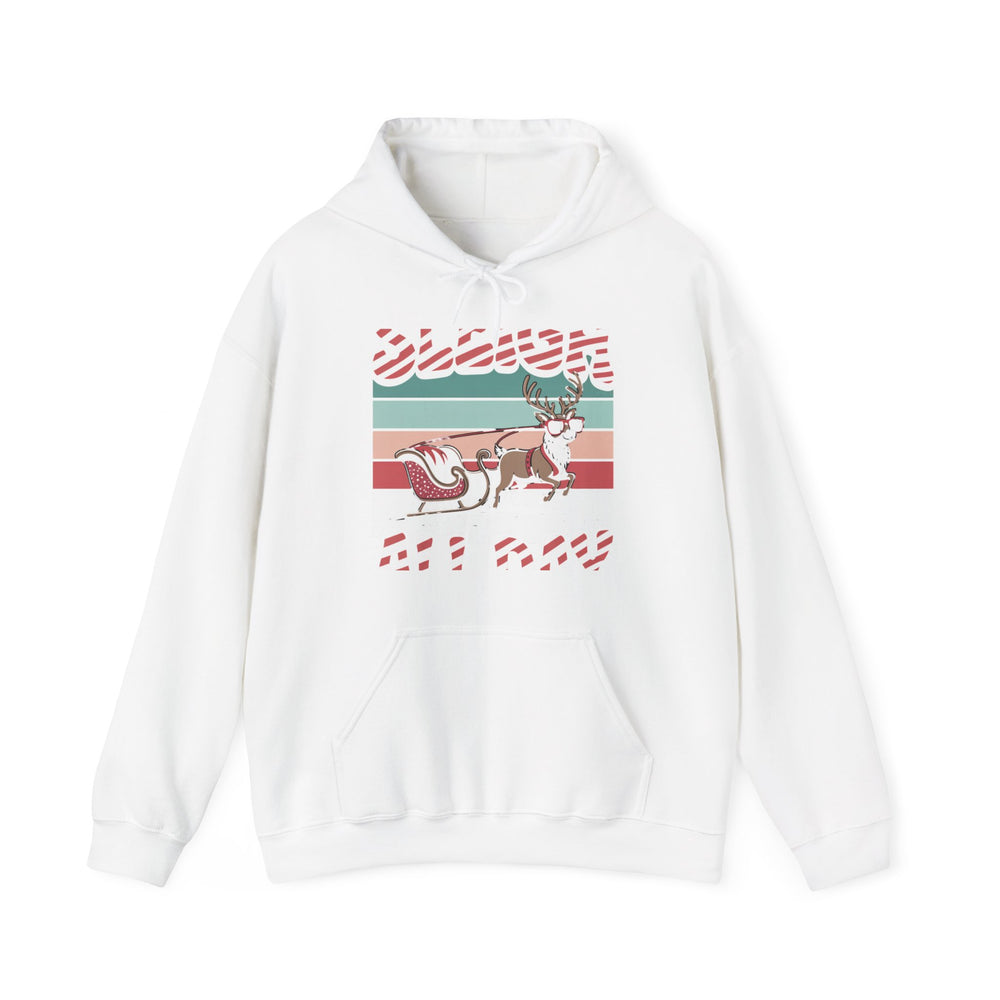 Retro Groovy Reindeer Hoodie - Sleigh All Day Vintage T-Shirt Design with Candy Cane Stripes & Pastel Colors $44.99